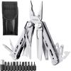 1.16-in-1 Multi-tool: Our multitool pliers is a 17-in-1 tool featuring needle nose pliers, regular pliers, wire cutters, main blade, scissors, ruler, nail file, slotted screwdrivers (3/5/6mm), wood saw, universal can opener, bottle opener, wire stripper, drill, Phillips screwdriver (comes with 11-in-1 screwdriver bits).